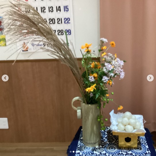 十三夜で花を生けたり、手作り団子を作りました。🌕夕食後お月様を見ることができましたが、すぐ雲に隠れてしまいました。グループホーム穏
