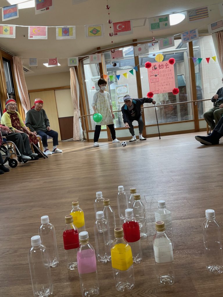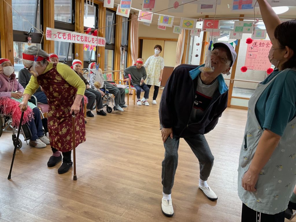 ユニット合同での運動会。 ラジオ体操から始まり、ボール渡しリレー、パン食い競争、玉入れ等の競技と、皆さまの笑顔と歓声が響き、楽しい運動会を開催しました。