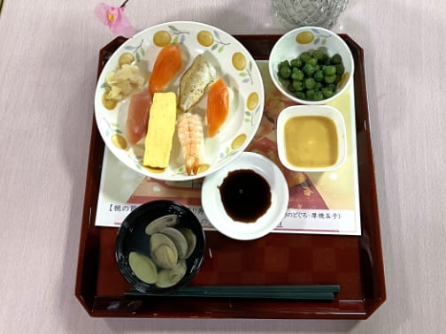 - 管理栄養士の作成する献立に基づき、利用者の身体状況に応じた食事を提供します。