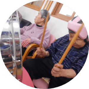 ちぎり絵やアルミ缶潰しなどの作業や動画・音楽鑑賞などの活動、体操などの体を動かす運動を行います。
